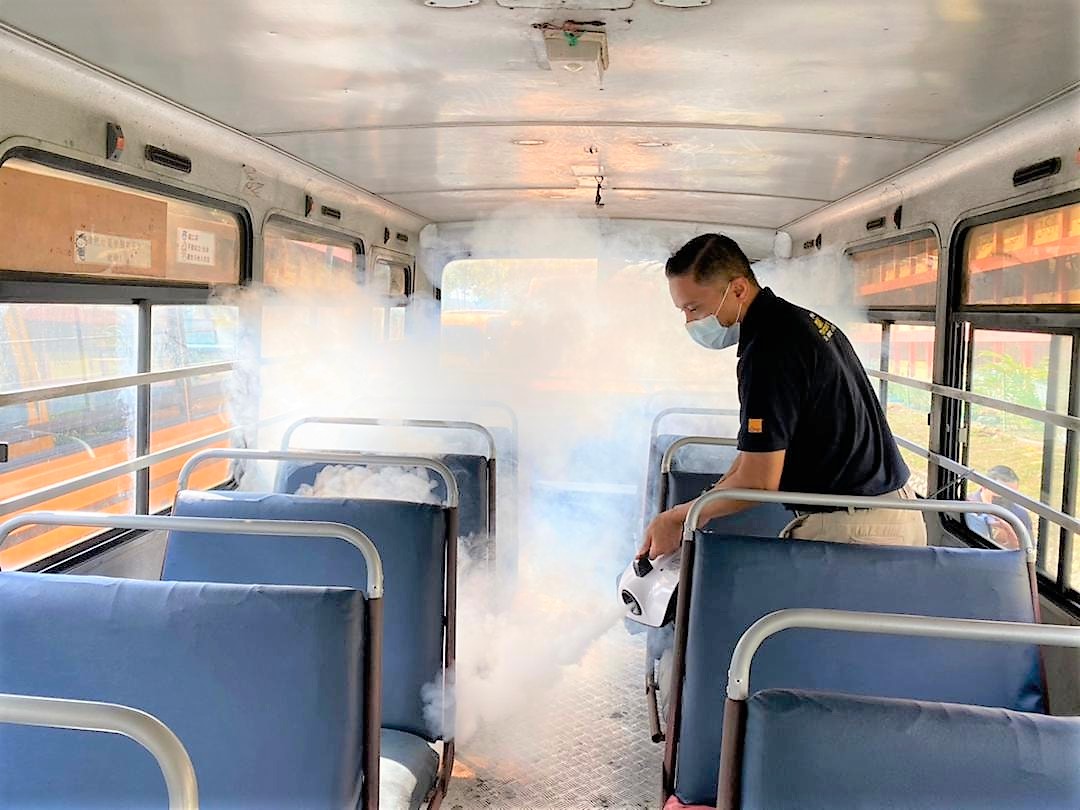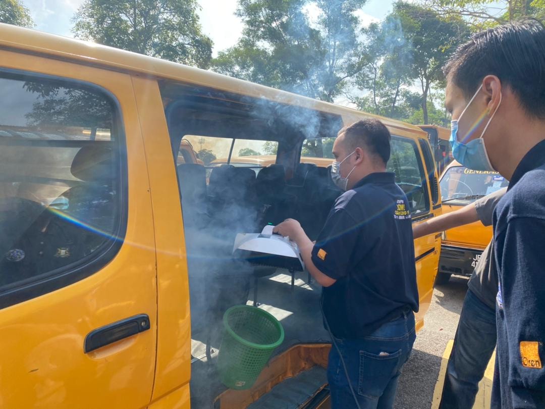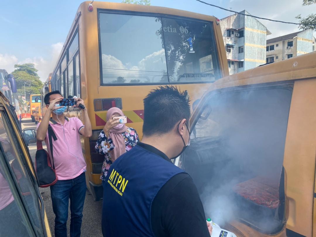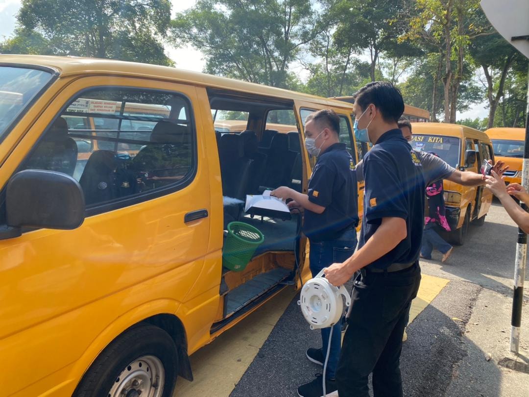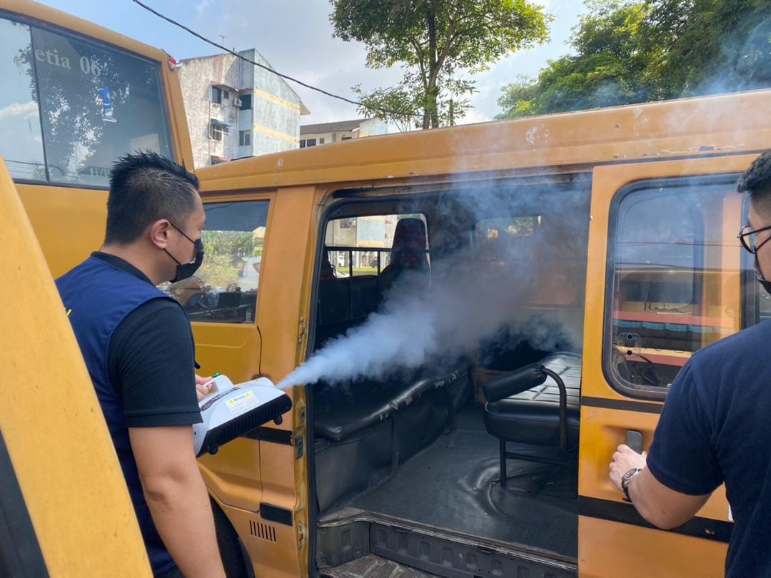 Sebanyak 60 buah Bas dan Van sekolah selesai melakukan proses Disinfeksi secara pandu lalu hari ini. Inisiatif ini adalah bertujuan memberi keyakinan kepada semua ibu bapa supaya menghantar anak2 mereka ke sekolah dengan menggunakan khidmat bas sekolah sekitar Tmn Daya. Disamping itu, program ini juga dpt membantu pengusaha2 bas sekolah mengurangkan beban mereka untuk mendapatkan khidmat sanitasi berbayar.