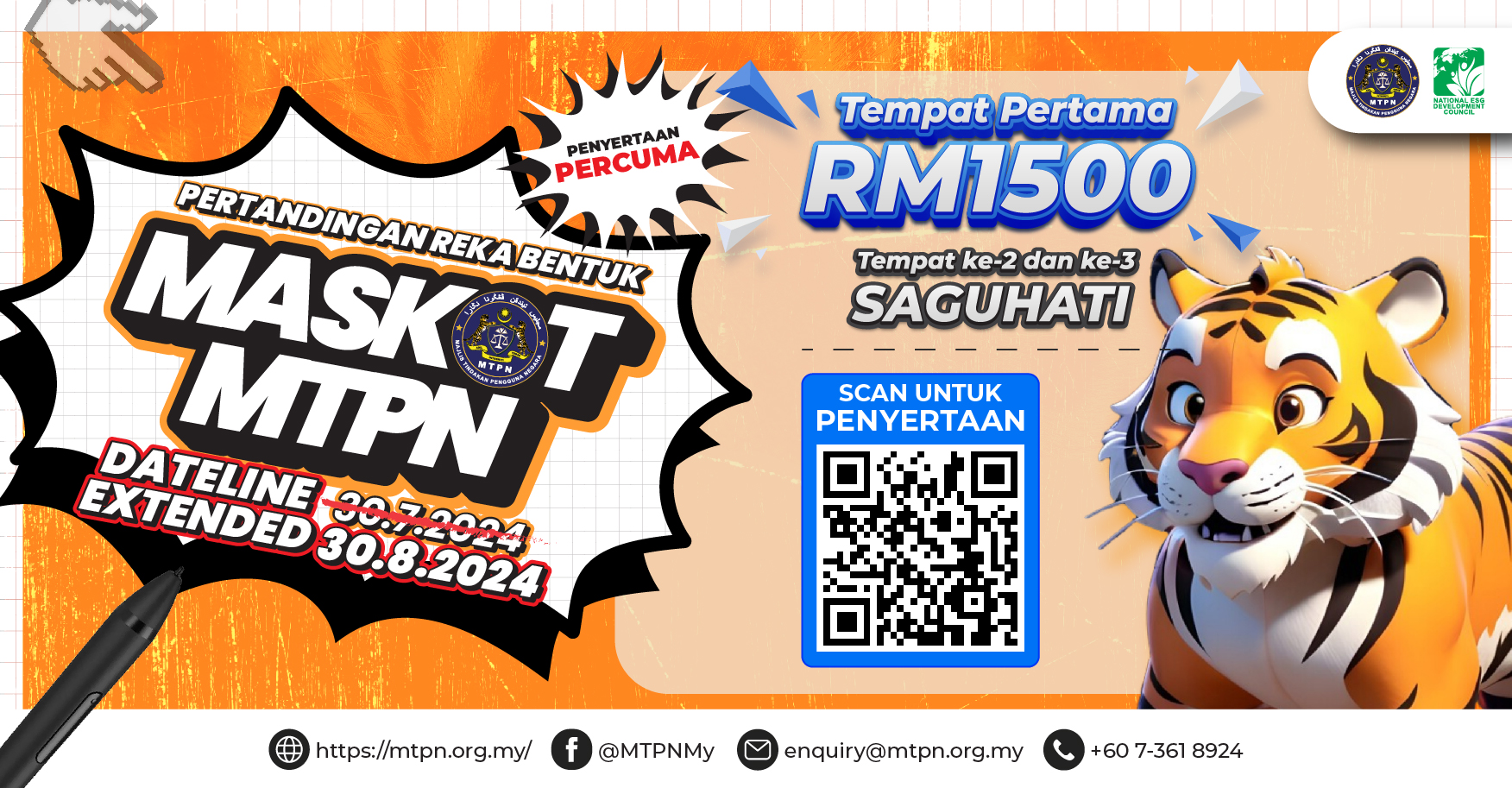 Anda berbakat dalam seni reka bentuk? Jika ya, inilah peluang keemasan anda! Majlis Tindakan Pengguna Negara (MTPN) bersama National ESG Development Council dengan bangganya mengumumkan Pertandingan Reka Bentuk Maskot MTPN kini dibuka!Kami mencari maskot yang mencerminkan semangat dan visi MTPN dalam mempromosikan tanggungjawab pengguna serta inisiatif ESG (Environmental, Social, and Governance). ๐“๐š๐ซ๐ข๐ค๐ก ๐“๐ฎ๐ญ๐ฎ๐ฉ ๐๐ž๐ง๐ ๐ก๐š๐ง๐ญ๐š๐ซ๐š๐ง ๐ƒ๐ž๐ฌ๐š๐ข๐ง : ๐Ÿ‘๐ŸŽ ๐‰๐ฎ๐ฅ๐š๐ข ๐Ÿ๐ŸŽ๐Ÿ๐Ÿ’ ๐‡๐š๐๐ข๐š๐ก ๐๐ž๐ฆ๐ž๐ง๐š๐ง๐ : ๐–๐š๐ง๐  ๐“๐ฎ๐ง๐š๐ข ๐‘๐Œ ๐Ÿ,๐Ÿ“๐ŸŽ๐ŸŽ ๐›๐š๐ ๐ข ๐“๐ž๐ฆ๐ฉ๐š๐ญ ๐๐ž๐ซ๐ญ๐š๐ฆ๐š ๐‚๐€๐‘๐€ ๐๐„๐๐˜๐„๐‘๐“๐€๐€๐ :* Sila imbas kod QR di poster untuk pendaftaran dan rujukan syarat pertandingan. Jangan lepaskan peluang ini untuk menunjukkan bakat anda dan menjadi sebahagian daripada usaha memperkasa pengguna di Malaysia. Sertai sekarang